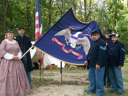 Company E, 12th Indiana welcomes family participation at all company events. As we are portraying a military entity in the field, any family members wishing to accompany the uniformed participants will be categorized as Cadets (young members from the ages of 13 to 16 who wish to don the Army Blue), Camp Followers, Refugees, or Civilian Aid Societies at any living history event we attend. This is an important part of the total package when presenting any living history. Women and children play a critical role to the company and are encouraged to attend living histories and reenactments; but civilians are limited, for safety reasons, to those activities portrayed in the context of the above, mentioned categories. (ie, no civilian tag-alongs or Vivandiers during the battles or drills, etc.) Active field participation is limited to ages 18 years or older (age 16, if accompanied by an adult, guardian or unit affiliated sponsor).